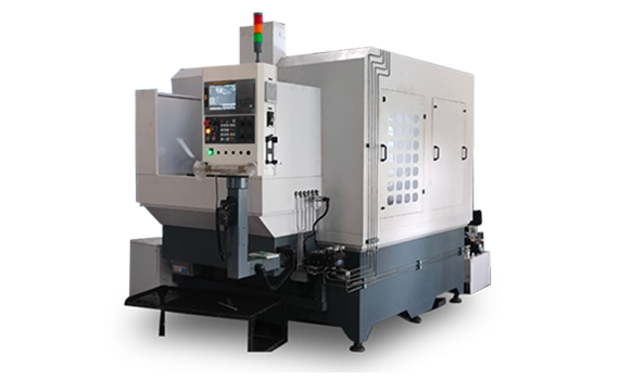 Twin spindle HMC doubles the productivity by machining two parts simultaneously. 180° swing type rotary table reduces work loading, unloading and idle time by allowing parts loading while machining on other side.